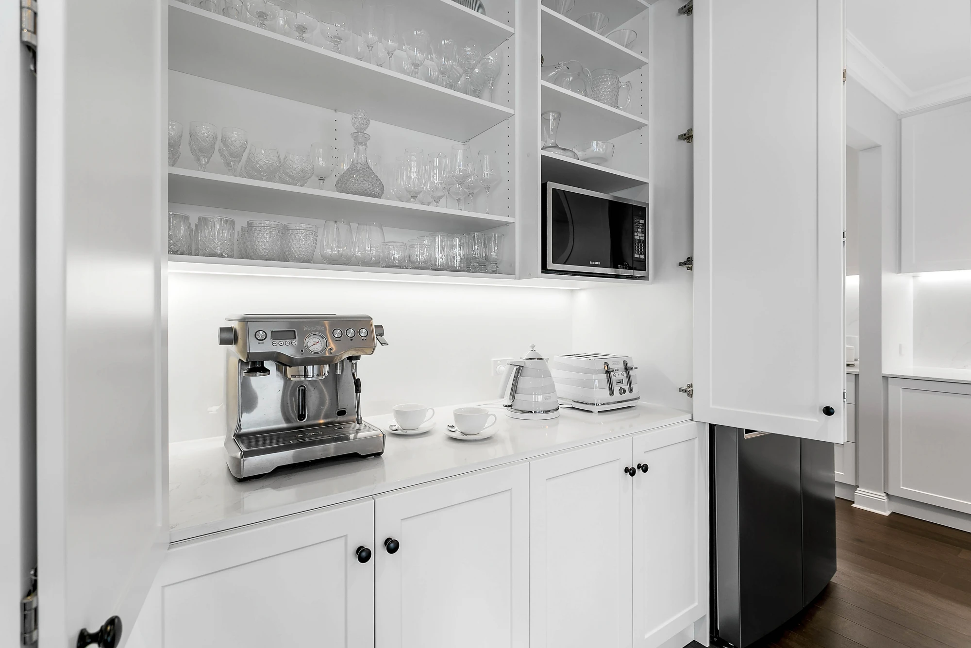 With the ever useful butler’s pantry as well as easy and effortless bi-fold appliance cupboard, this stunning renovation was a joy to craft and our happy customers could not agree more!