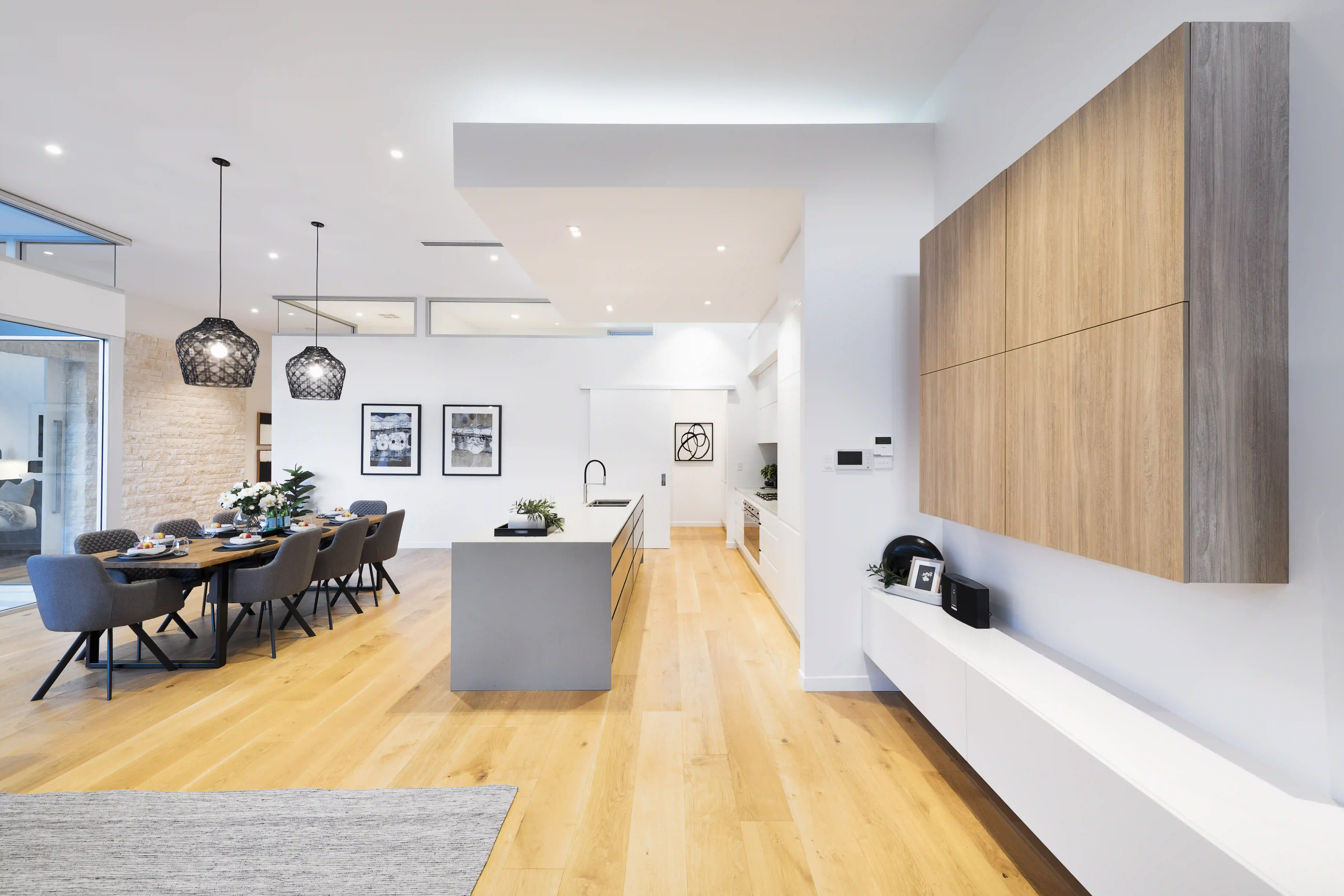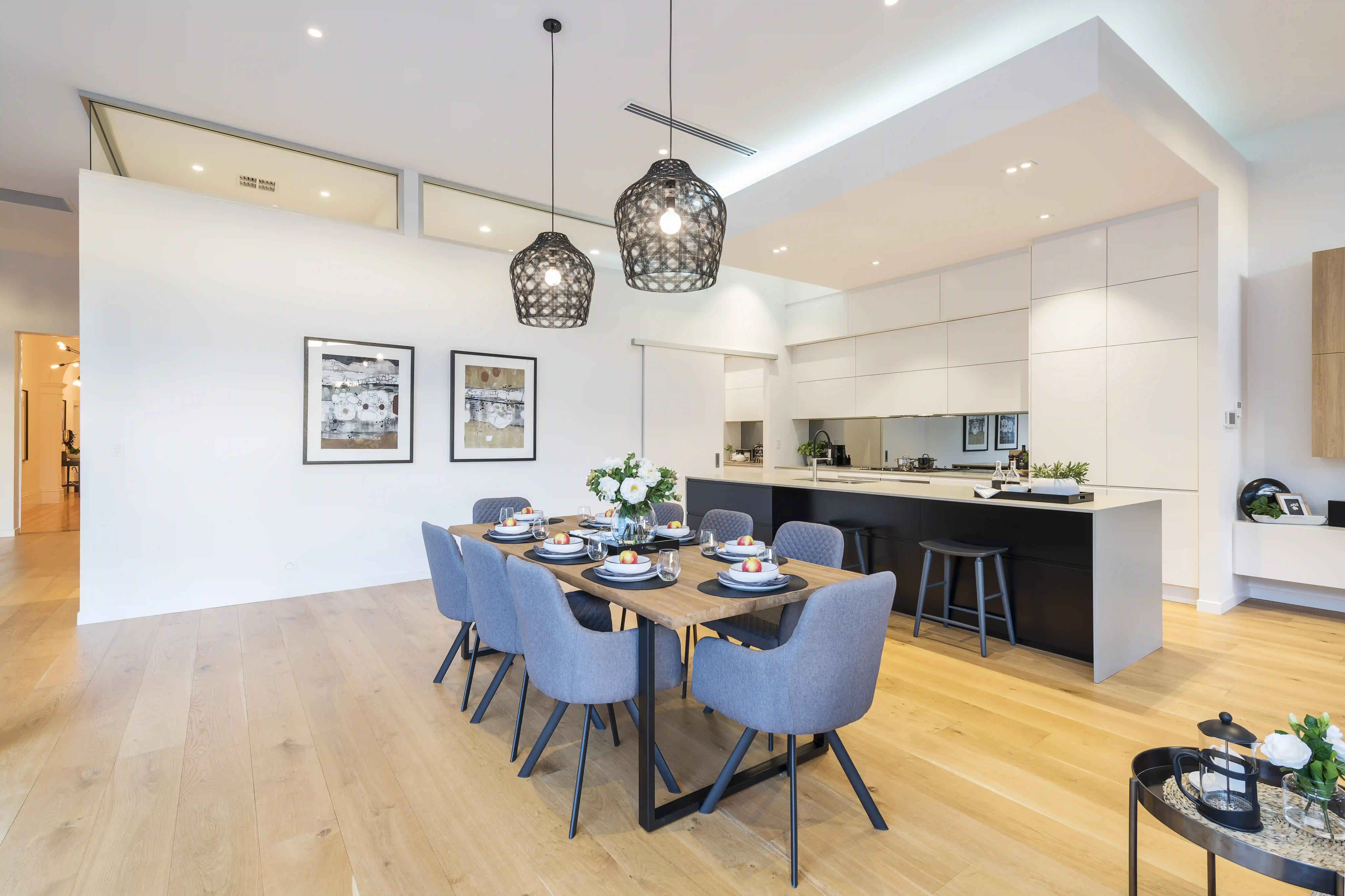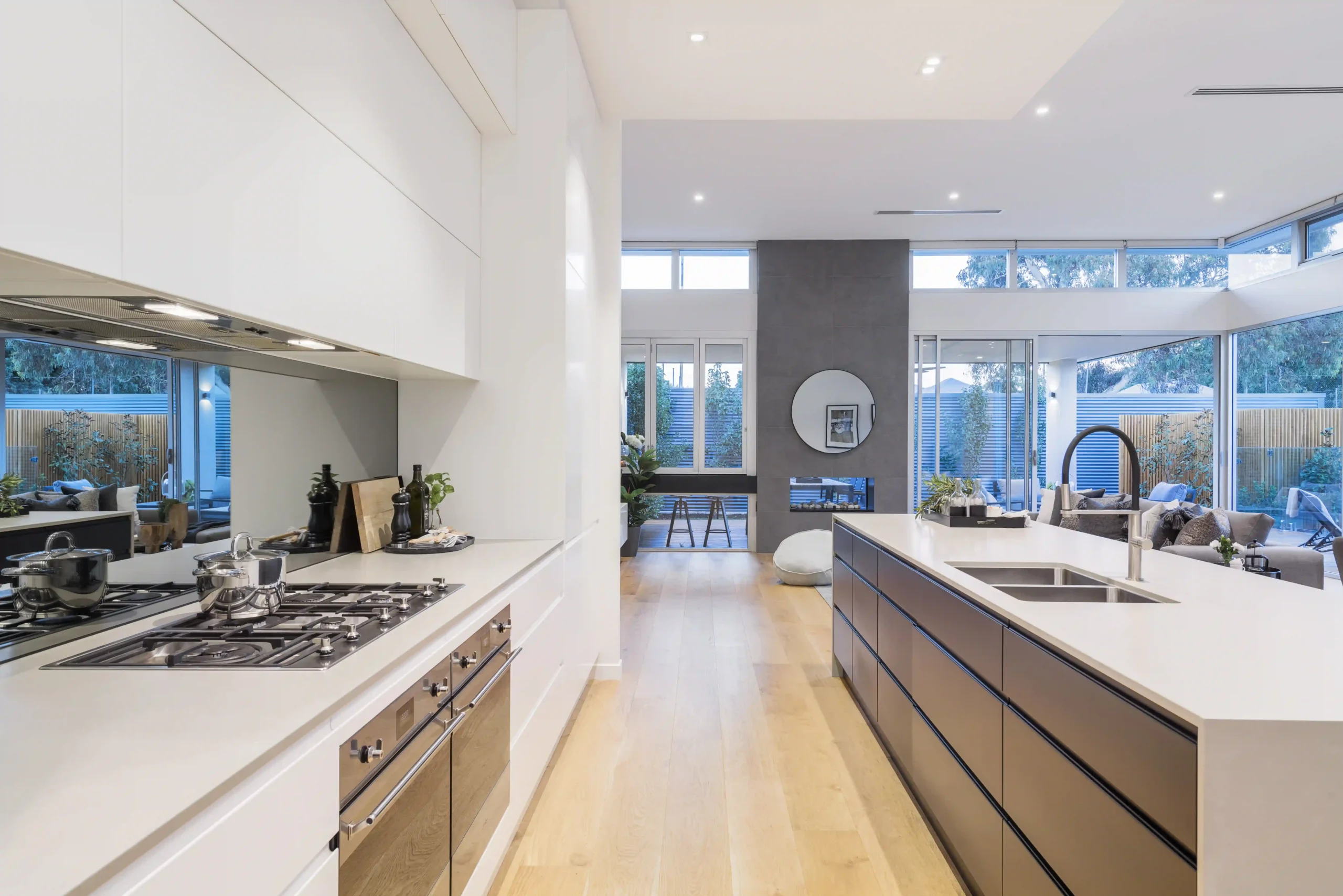 All 2 pack custom cabinetry with stone benchtops and fully integrated appliances. Simple. Contrasting. Modern.