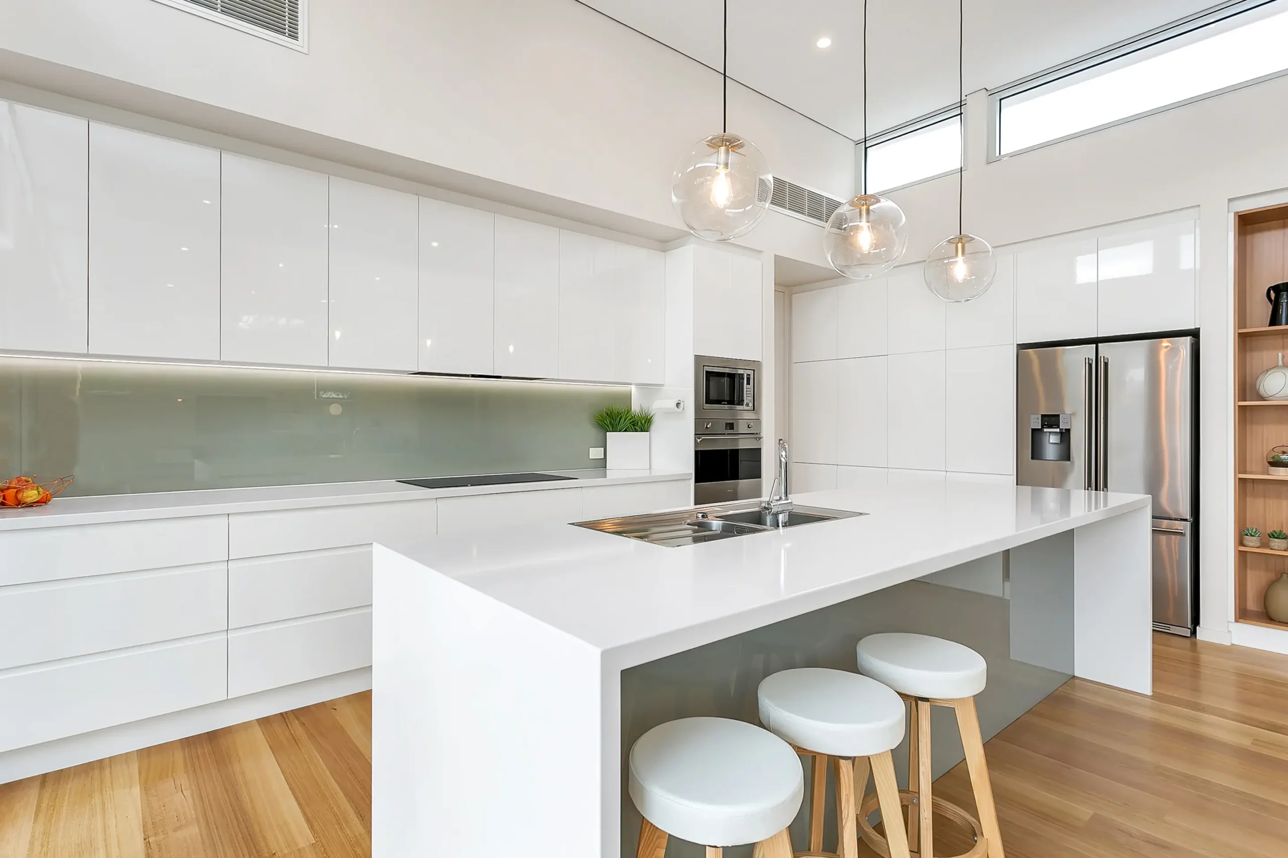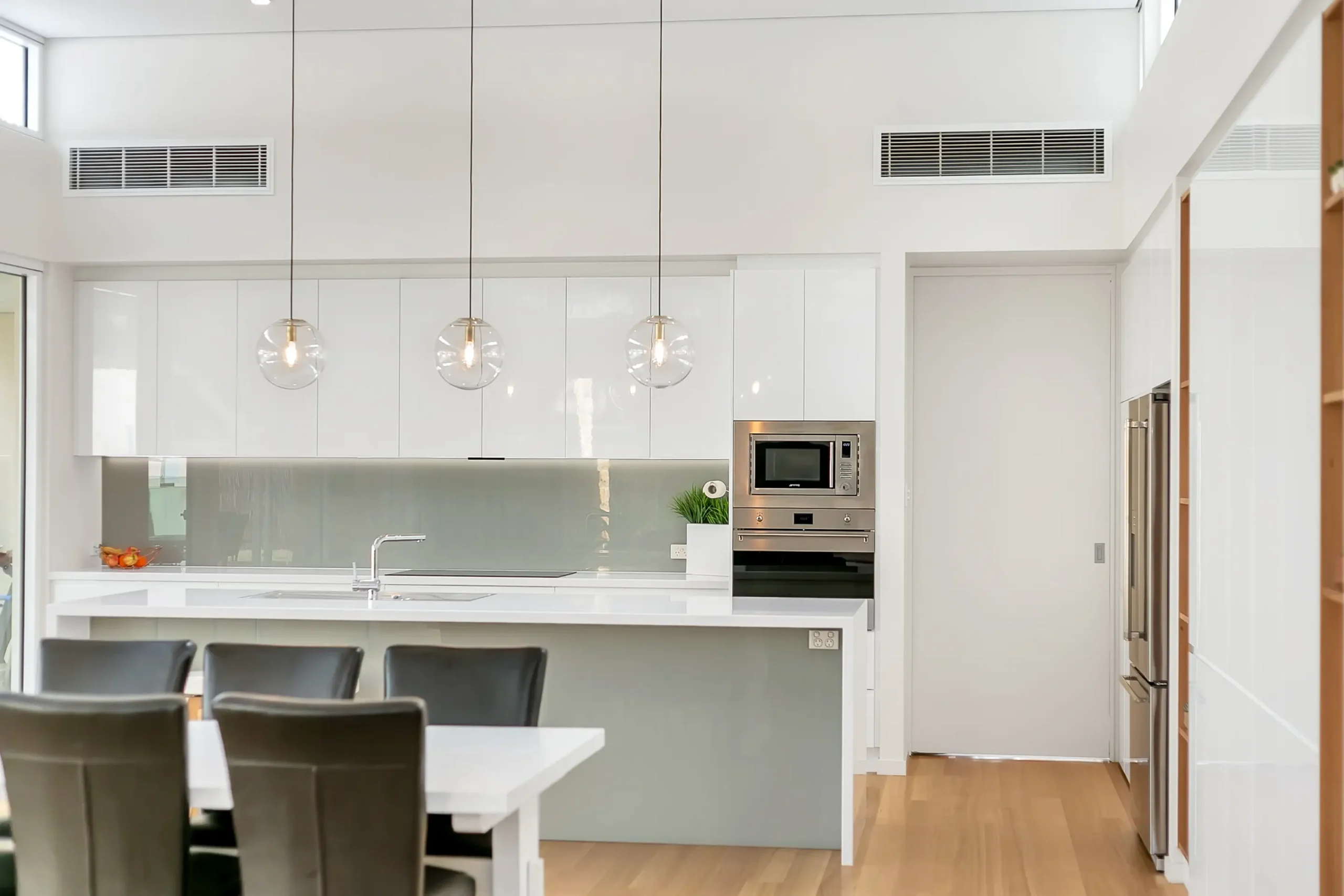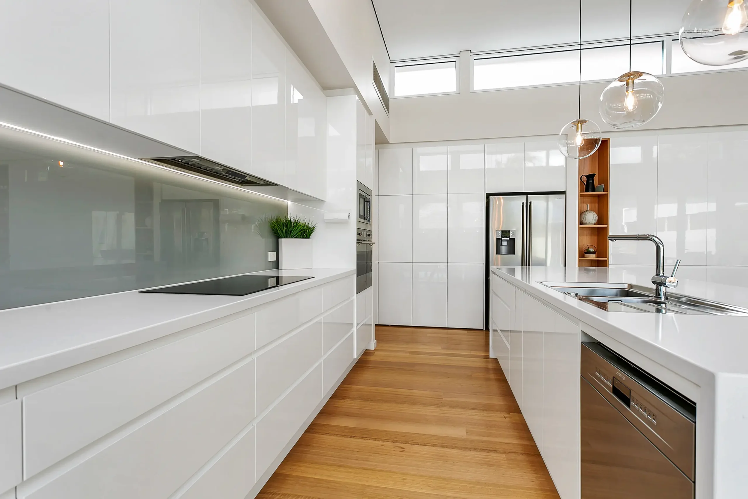 There is nothing quite like polished timber and veneer to really warm up a home. And why not keep it local with a fabulous Tasmanian Oak. Keeping the cabinetry and home feeling modern, we didn’t want to over do the timber and so sought to keep the house light and bright with 2 pack cabinetry with little splashes of oak in between.